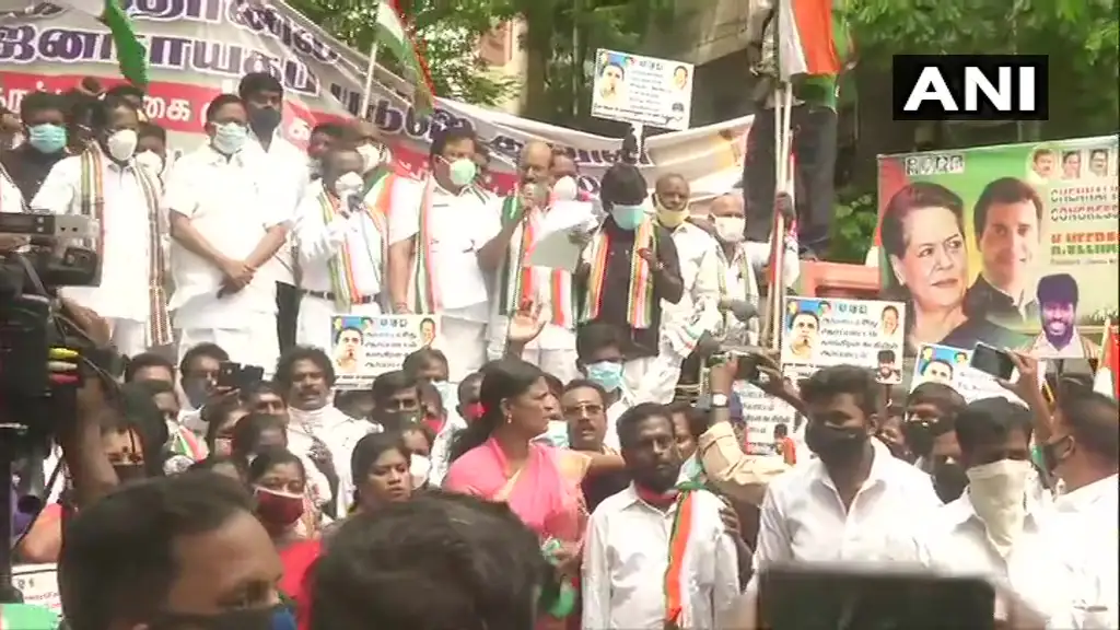 तमिलनाडु कांग्रेस चीफ के नेतृत्व में कांग्रेस कार्यकर्ताओं का राजभवन पर हल्ला बोल।